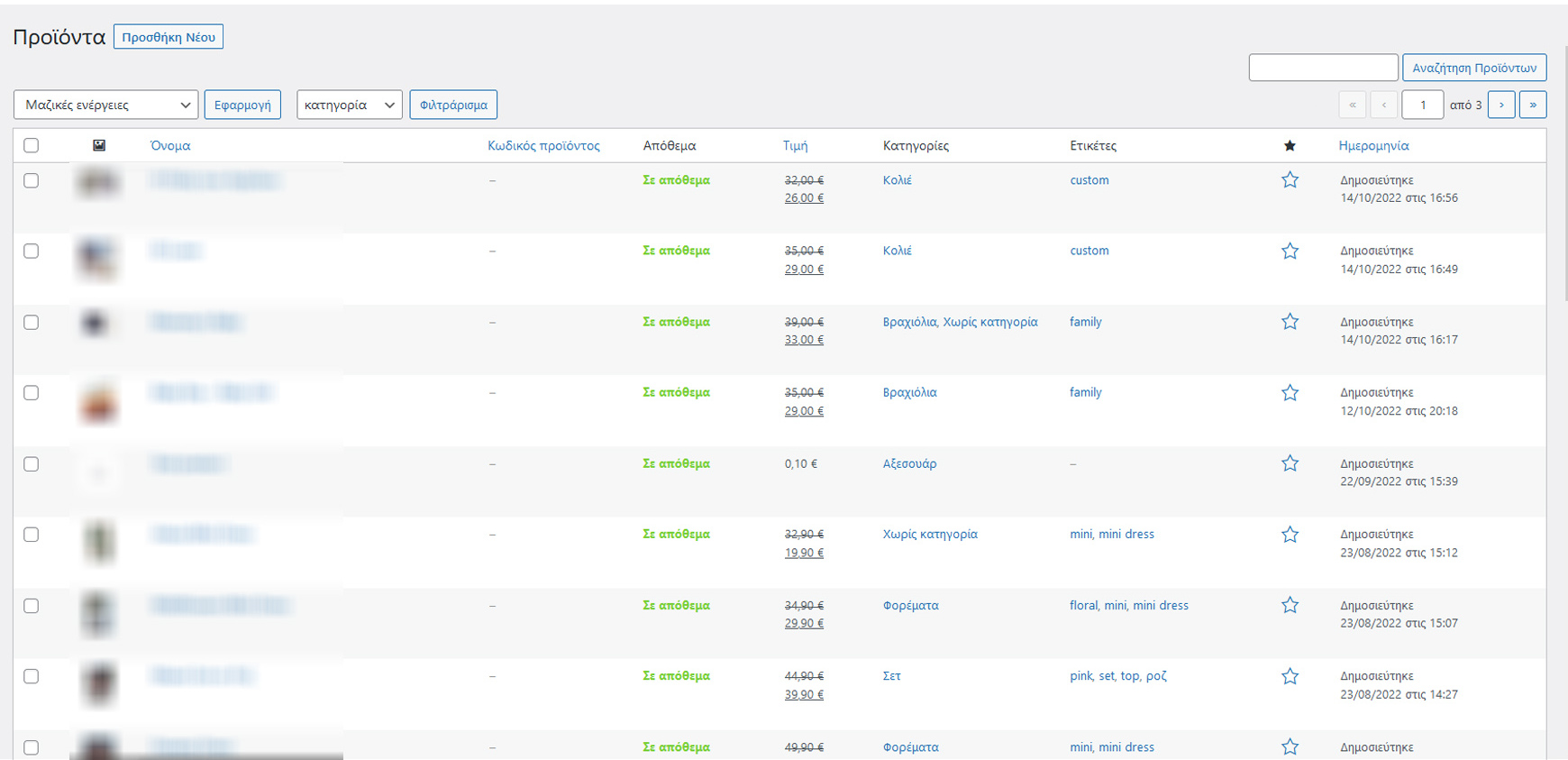 - Δημιουργία προϊόντων: Μπορείτε να δημιουργήσετε βασικά προϊόντα ή προϊόντα με παραλλαγές (όπως χρώμα, μέγεθος κ.λπ.). Παράλληλα, μπορείτε να δημιουργήσετε εικονικά προϊόντα. Δίνεται επίσης η δυνατότητα για πλήρη διαχείριση, συμπεριλαμβανομένων κατηγοριών, χαρακτηριστικών, γνωρισμάτων, περιγραφών, αποθεμάτων, βάρους, διαστάσεων, εμπορικών σημάτων, κωδικών και γκαλερί (gallery) φωτογραφιών.